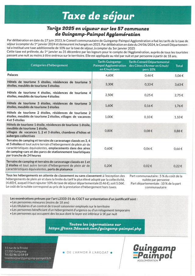- Taxe de séjour 2025