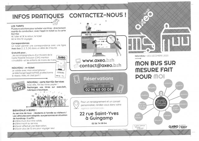 Les services de transports Axéobus, Axéophone et Axéoplus existants sur l’ex Communauté de Communes de Guingamp restent quant à eux inchangés pour l’instant.